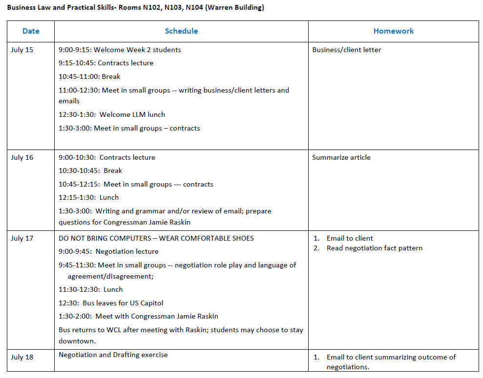 English for Lawyers Registration Opens December 1, 2019 for the 2020 Summer Program! (Seats are limited and availability changes daily) July 6 - 23, 2020 July 6 - 9: Basics of the U.S. Legal System and U.S. Legal Analysis July 13 - 16: U.S. Business law